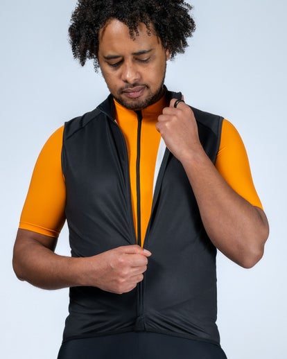 Wanneer er kans op regen is, er een straffe wind staat of als het weer gewoonweg wisselvallig is, is het Rouleur heren All Weather vest onmisbaar. De voorkant, schouders en buitenkant van de kraag zijn gemaakt van een wind- en waterdichte gerecyclede stof.